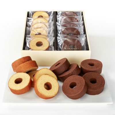 高級感あるパッケージと上質な素材で人気のキハチ。特にバームクーヘンはしっとり食感と上品な甘さが特徴で、ギフト映えするデザインも魅力です。