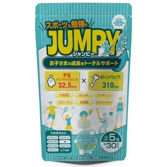 ジャンピーはアルギニンを中心に、身長サポート成分に特化した商品。味もフルーツ系で飲みやすい点が特徴。シンプル構成で続けやすい反面、補える栄養の幅はやや限定されています。