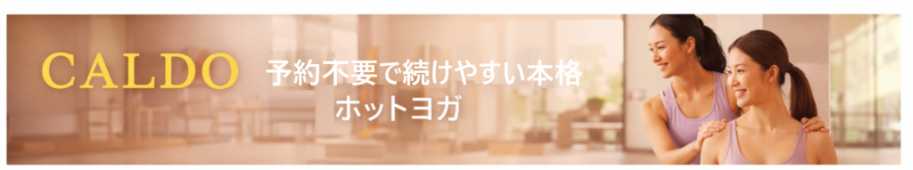 CALDOは全国展開する大手ホットヨガスタジオで、特に「通いやすさ」と「コストパフォーマンス」の高さが支持されています。事前予約不要の店舗が多く、忙しい40代女性でも自分のペースで通える点が大きな魅力です。