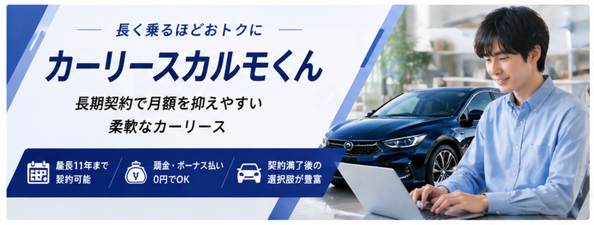 カーリースカルモくんは、長期契約の選択肢が豊富で、公式では最長11年契約や頭金・ボーナス払い0円、長期契約時の走行距離の柔軟性などが案内されています。