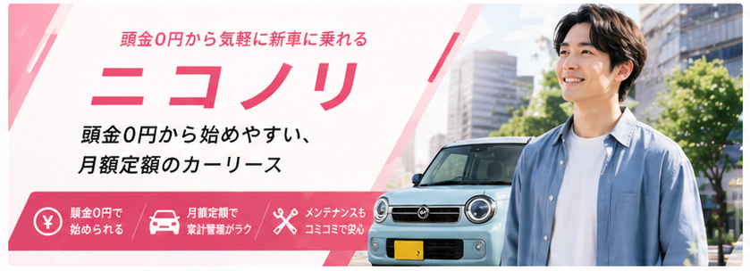 ニコノリは、頭金0円・月額定額で始めやすいカーリースとして注目されています。公式案内では、税金・車検・メンテナンスなどを月額にまとめやすい点が紹介されています。